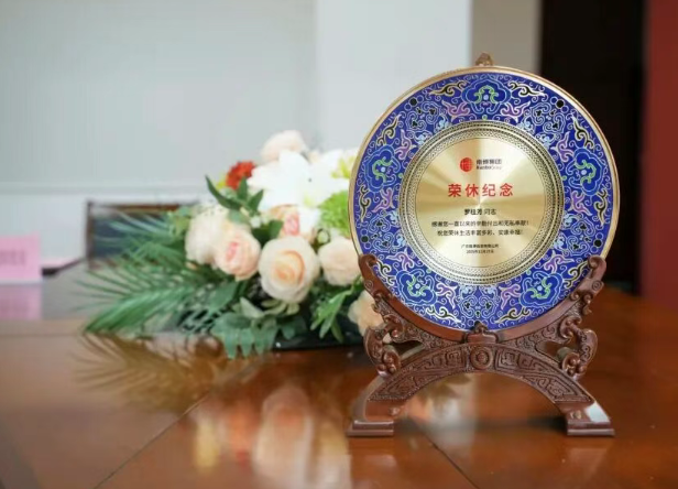 集团总裁胡春芳,董事长助理周二勇、贺娥花、刘志扬代表集团向罗桂芳总工程师二十多年来的辛勤付出表达诚挚感谢与崇高敬意。作为集团发展历程中的重要建设者与奉献者,罗桂芳总工程师从学院管理到物业筹建,从企业运营到基建统筹,他始终秉承“干一行、爱一行、钻一行”的执着精神,践行了“爱岗敬业,企业利益至高至上”的操守。集团永远是退休职工的家和坚强后盾,欢迎罗桂芳总工程师常回家看看,继续为集团发展建言献策。