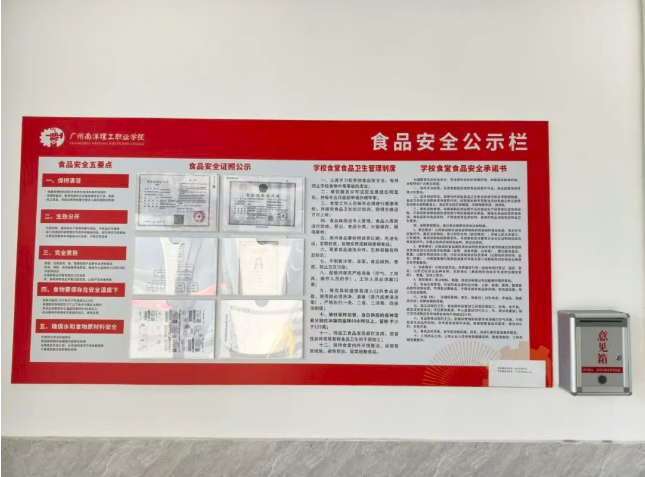 接受教育、卫生、市场监管等多部门联合监管,证照资质全面公示,接受师生监督;工作人员持证上岗,定期体检培训;师生代表定期全面检查,全方位把关,问题即改,形成“监管+监督”双重保障。